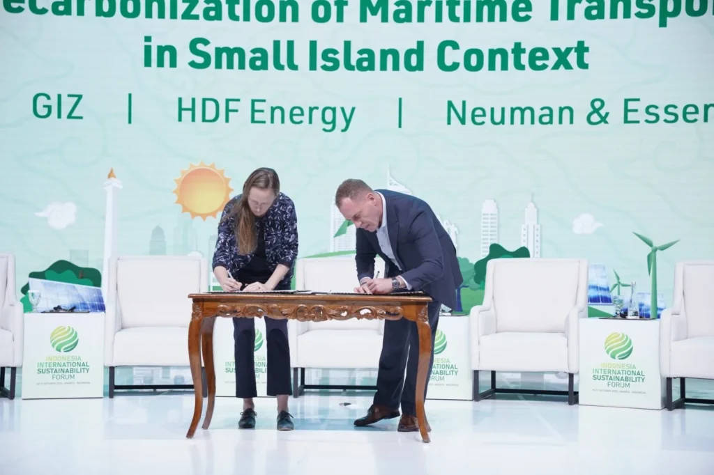 Jakarta, 10 October 2025 – The Deutsche Gesellschaft für Internationale Zusammenarbeit (GIZ) GmbhH have signed a PPP agreement with Neuman & Esser South East Asia Ltd (NEA SEA), and HDF Energy (Hydrogène de France) at the Indonesia International Sustainability Forum (IISF) in Jakarta. The collaboration aims to decarbonise Indonesia’s inter-island ferries to further scale the development of Indonesia’s green hydrogen ecosystem and support the country’s decarbonisation efforts in maritime sectors.