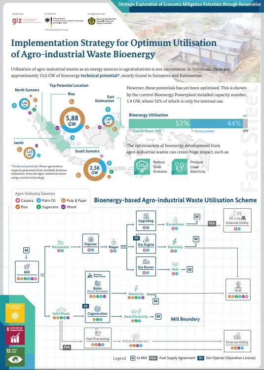 BioDB is a useful website for providing general information, encouraging discussion and conversation on the topic of bioenergy from agro-industrial waste. The data and information presented were collected by the Strategic Exploration of Economic Mitigation Potentials through Renewables (ExploRE) project, a project funded by the Federal Ministry for the Environment, Nature Conservation and Nuclear Safety (BMU), Federal Republic of Germany, in collaboration with the Ministry of Energy and Mineral Resources (ESDM) of the Republic of Indonesia, and implemented by the Deutsche Gesellschaft für Internationale Zusammenarbeit (GIZ)