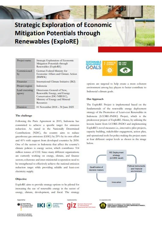 The ExploRE Project is implemented based on the fundamentals of the renewable energy deployment strategy of the Promotion of Least-cost Renewables in Indonesia (LCORE-INDO) Project, predecessor project of ExploRE. The project works across four different output levels: